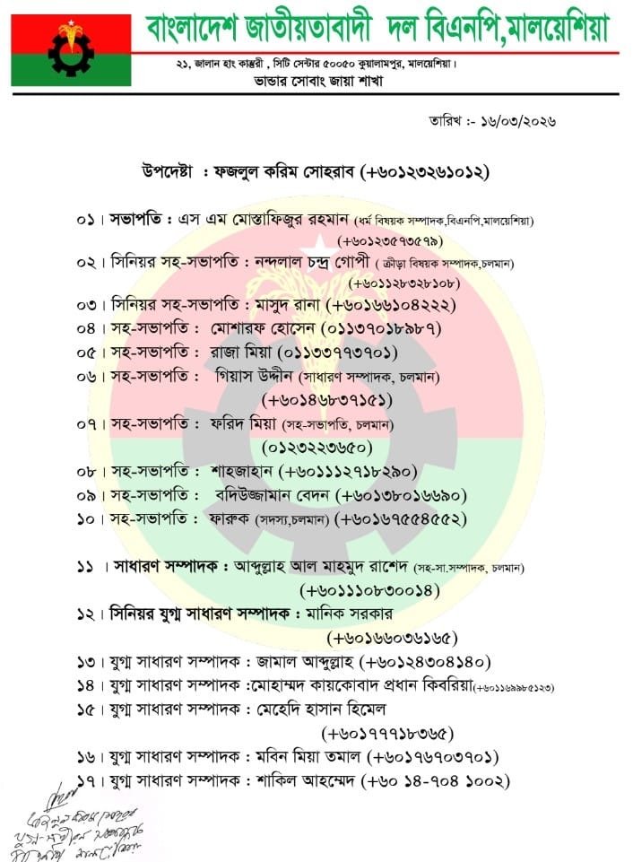 Strengthening the Overseas Wing The appointment is part of the party’s ongoing efforts to restructure and strengthen its overseas units. As Senior Joint Convener, Mr. Manik Sarkar is expected to play a pivotal role in organizing party activities, coordinating with the central leadership in Bangladesh, and addressing the concerns of the Bangladeshi expatriate community living in the Bhandar Sobat Chhaya region.
